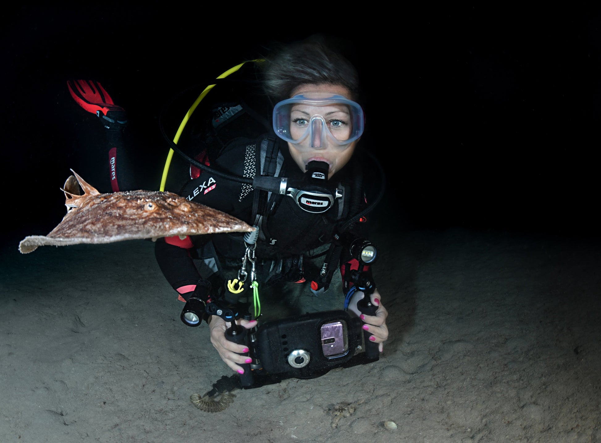 Less is more. A night dive lets you see more in the little light than a brightly lit dive site.